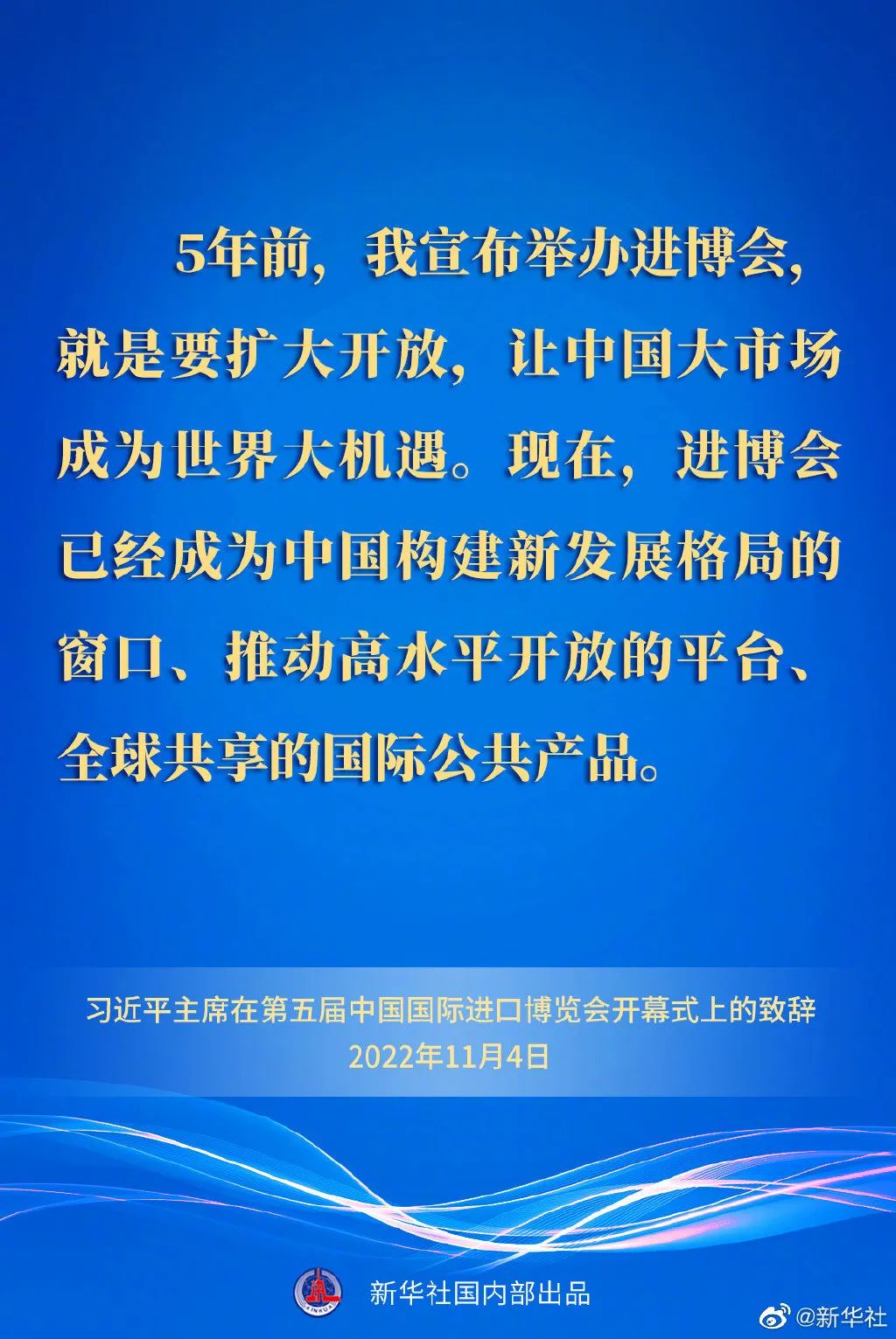 11月4日晚,國家主席習(xí)近平以視頻方式出席在上海舉行的第五屆中國國際進(jìn)口博覽會(huì)開幕式并發(fā)表題為《共創(chuàng)開放繁榮的美好未來》的致辭。