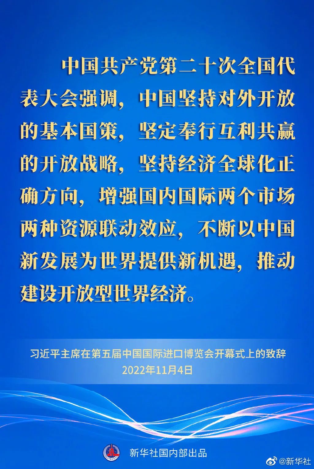 習(xí)近平指出,中國共產(chǎn)黨第二十次全國代表大會(huì)強(qiáng)調(diào),中國堅(jiān)持對(duì)外開放的基本國策,堅(jiān)定奉行互利共贏的開放戰(zhàn)略,堅(jiān)持經(jīng)濟(jì)全球化正確方向,增強(qiáng)國內(nèi)國際兩個(gè)市場兩種資源聯(lián)動(dòng)效應(yīng),不斷以中國新發(fā)展為世界提供新機(jī)遇,推動(dòng)建設(shè)開放型世界經(jīng)濟(jì)。
