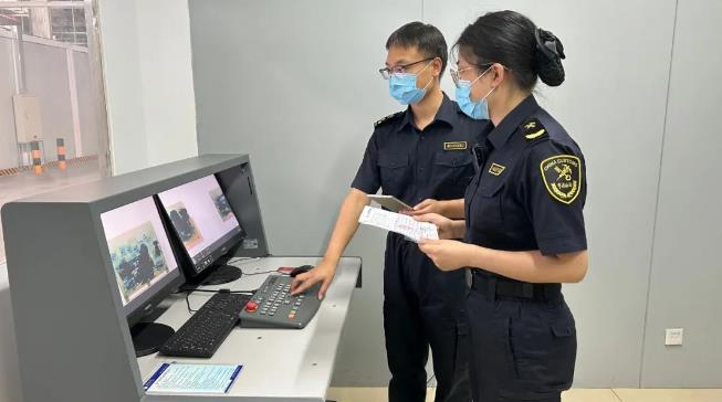 8月2日,中國鄭州機場海關關員用X光機對進口貨物開展非侵入式查驗。新華社發(鄭州機場海關供圖)