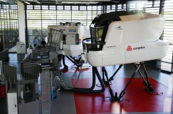 8月1日,工作人員在盧森堡貨航總部的飛行模擬器區域工作。新華社記者 鄭煥松 攝