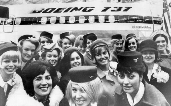 圖:1967年1月,17家已經訂購了737飛機的航空公司空姐在第一架737飛機前合影。圖片來自美聯社