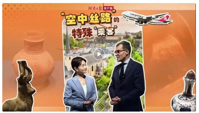 從2013年至今,鄭盧“空中絲路”的建設(shè)在兩國元首的關(guān)注下取得豐碩成果。從兩家企業(yè)的投資合作,發(fā)展到中盧之間的商貿(mào)往來、綠色能源、客運(yùn)旅游、人文交流等各方面。2018年,河南航投與河南省文物局簽署合作意向書,根據(jù)約定,河南航投將提供航空運(yùn)輸便利,共同促進(jìn)河南文物的對外開放和交流、促進(jìn)兩地民心相通,由鄭盧“空中絲路”保障了河南文物從鄭州抵達(dá)盧森堡。當(dāng)年11月在盧森堡開展時(shí),米歇爾·波費(fèi)爾主持了開幕式,河南航投與盧森堡貨航負(fù)責(zé)人一同出席,豫盧雙方在現(xiàn)場達(dá)成深化文化交流的意愿。